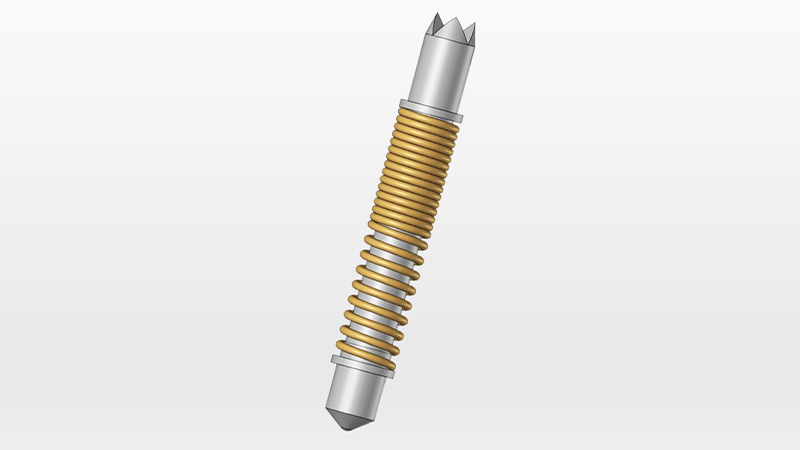 日本発条のコンタクトプローブ(マイクロコンタクタ)は、長年培ったばね加工技術を基盤としています。特に、スプリングの密巻部そのものを導通経路とする「パイプレス構造」が技術的な大きな特徴です。
