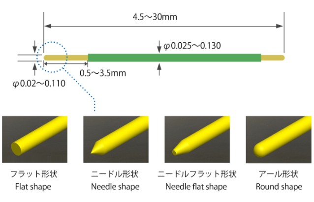 同社は、タングステンを精密に加工する独自の技術を持っており、様々な形状やサイズのニードルプローブに対応できます。